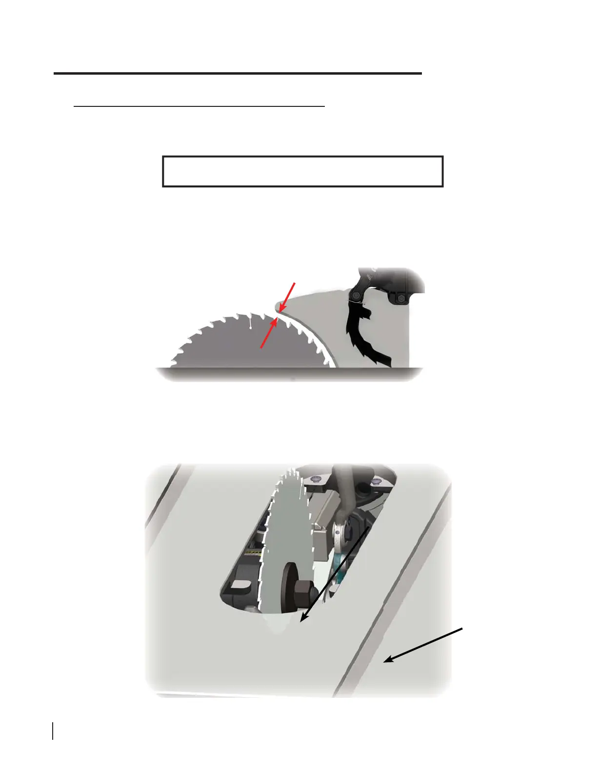 Now lower the blade until the top of the blade is slightly below the top of the table insert. To set the blade fl ush