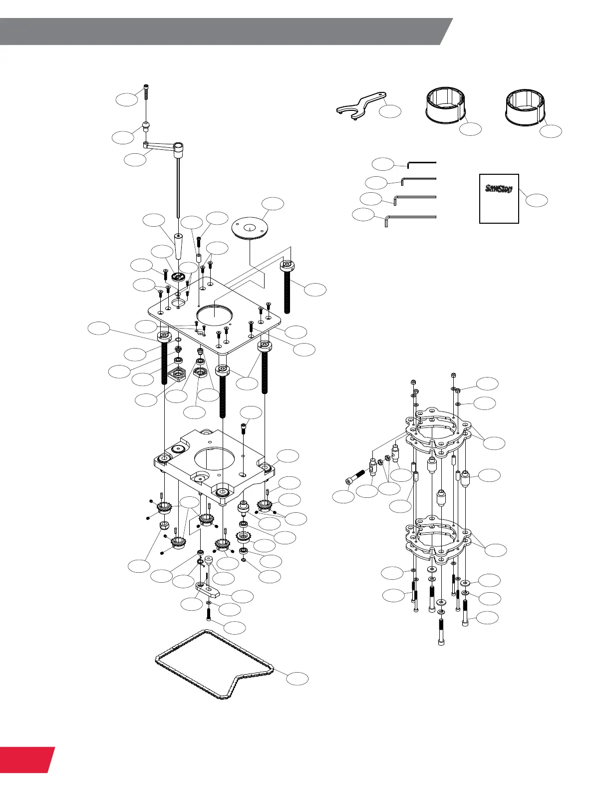 SawStop RT-LFT - Exploded View 1: Four-Post Router Lift with Lock