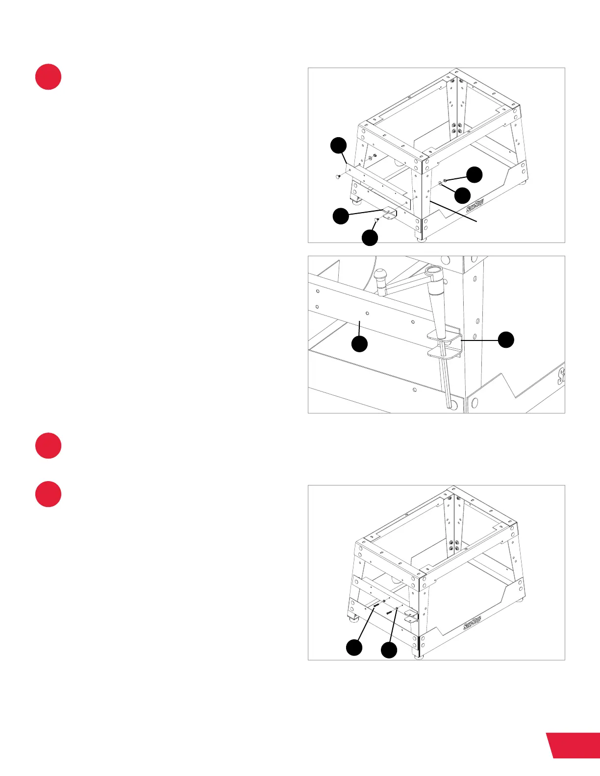 Use a 10mm wrench to tighten the 34 nuts on the bolts in the stand legs.