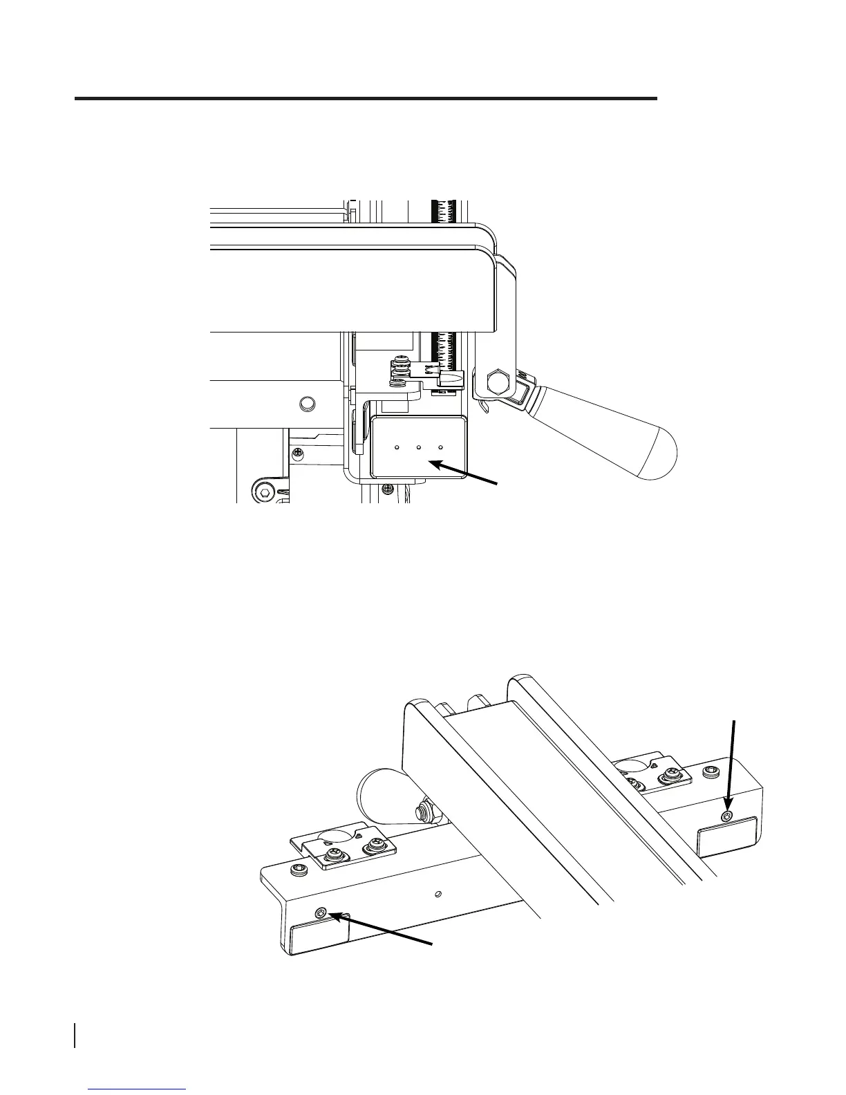 parallelism adjustment screws clockwise using a 5 mm hex key. Those screws are located in the vertical edge of the