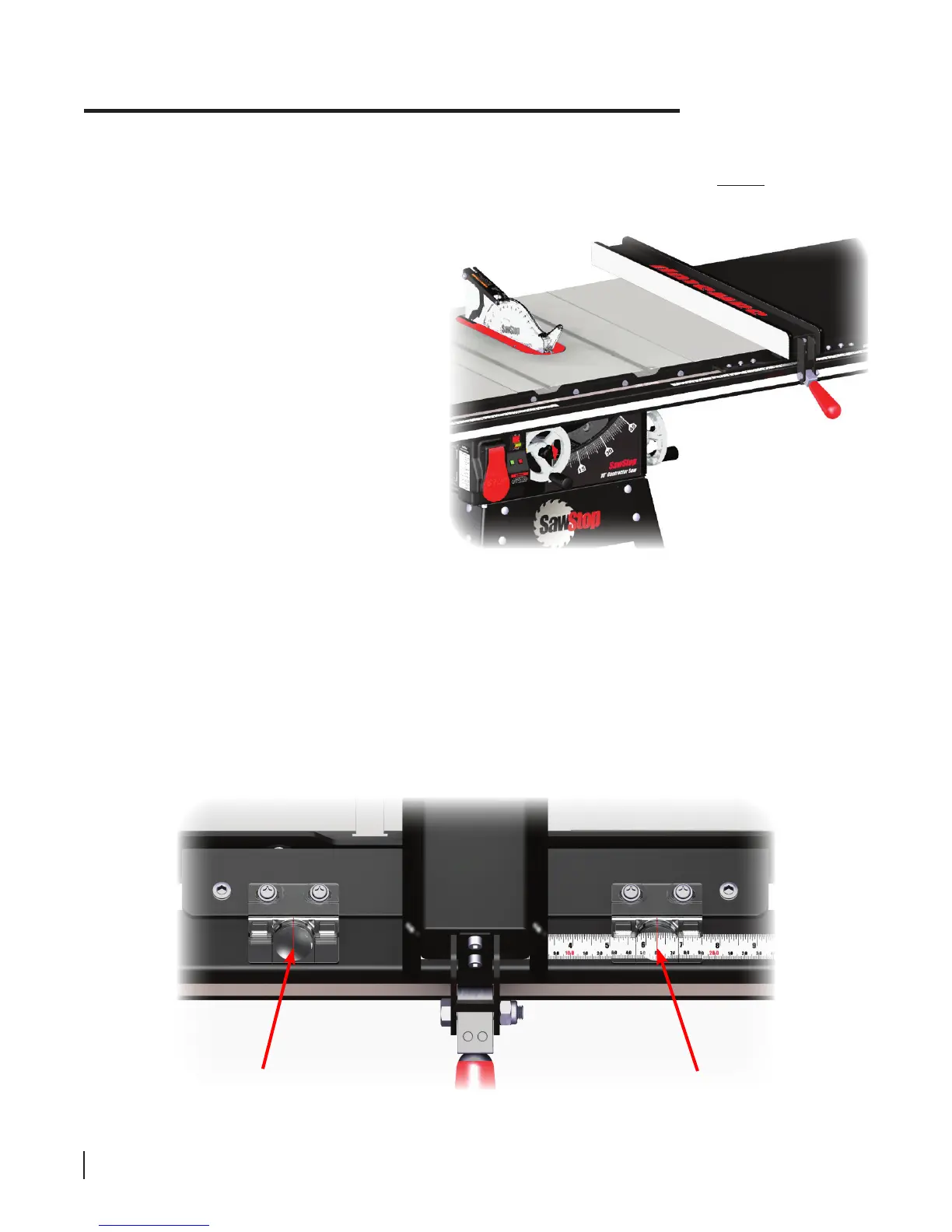 left indicates the width of cut when the fence is on the left side of the blade. The lens on the right indicates the