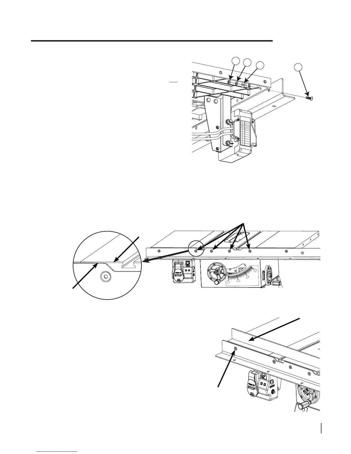 allow you to level the front rail and extension wings to the table top. Align the top of the front rail with the lower