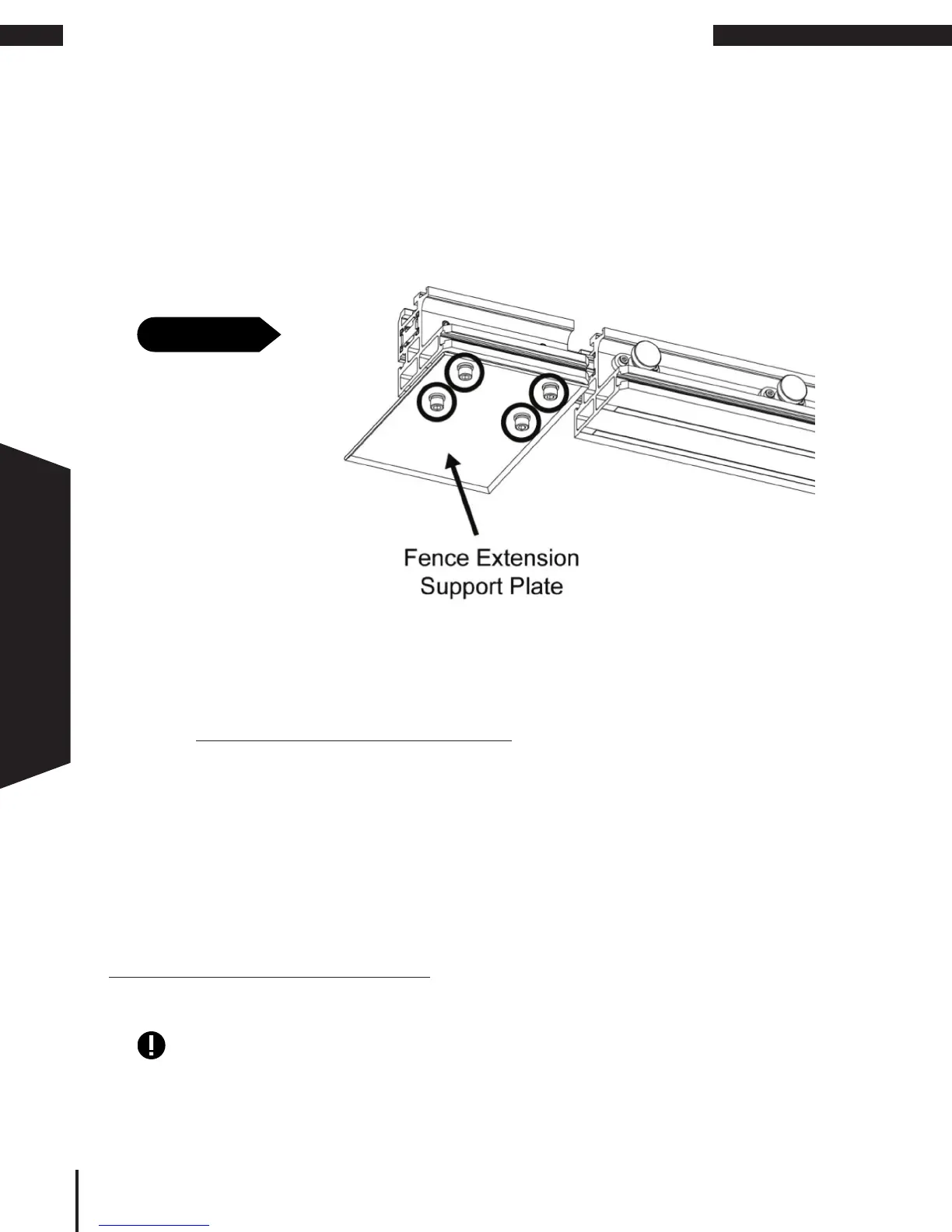 20. Mount the Fence Extension Support Plate (202) to the bottom of the Fence Extension using four M6 Cap