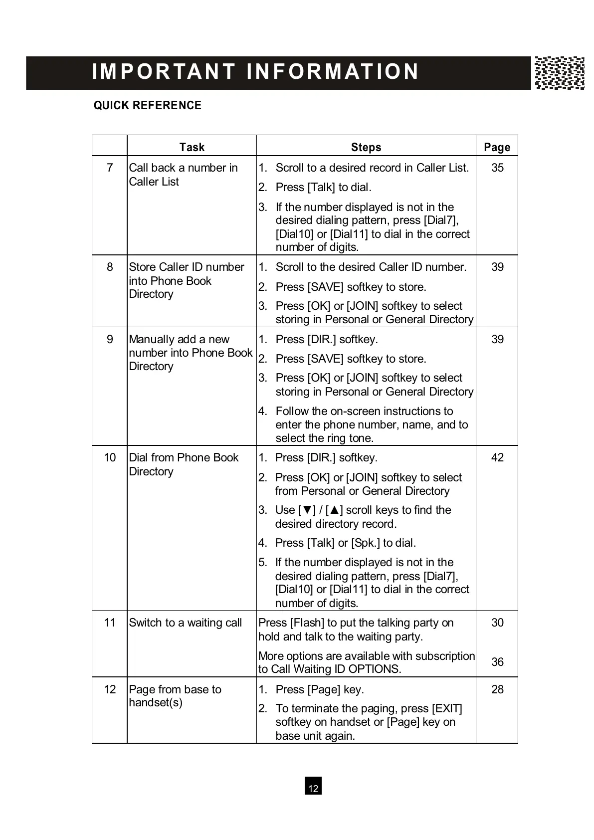 QUICK REFERENCE
