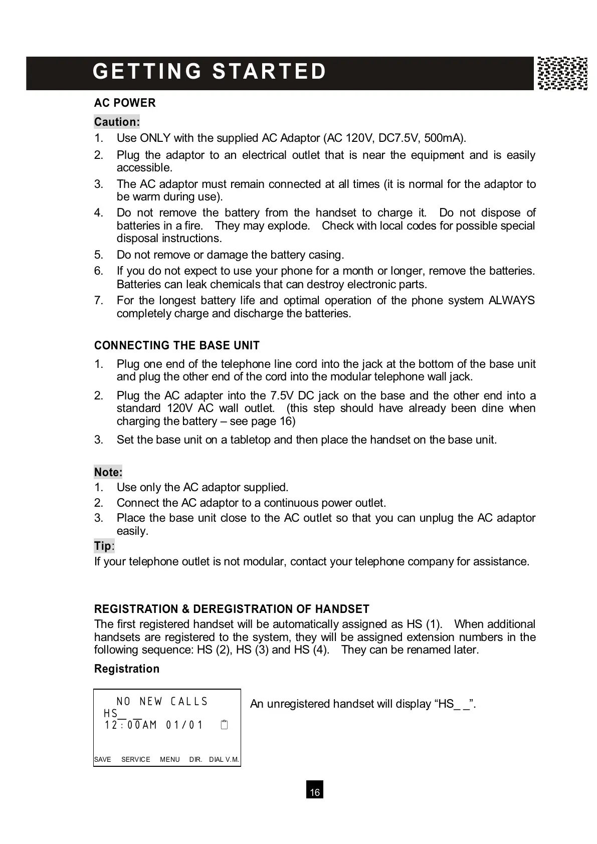 The first registered handset will be automatically assigned as HS (1). W hen additional