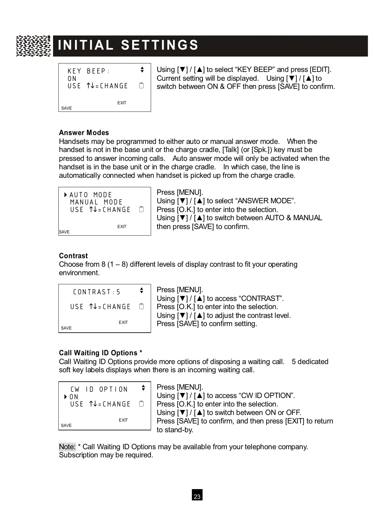 Note: * Call W aiting ID Options may be available from your telephone company.