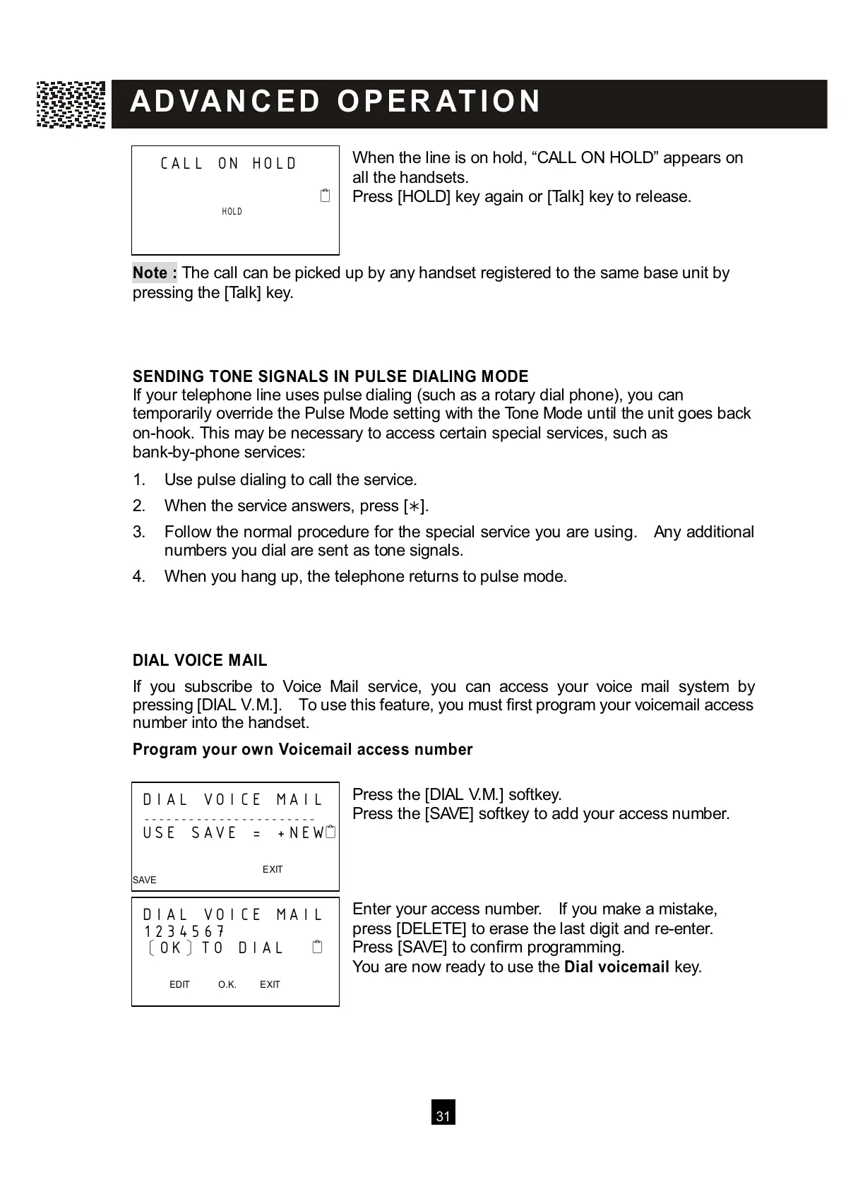 pressing [DIAL V.M.]. To use this feature, you must first program your voicemail access