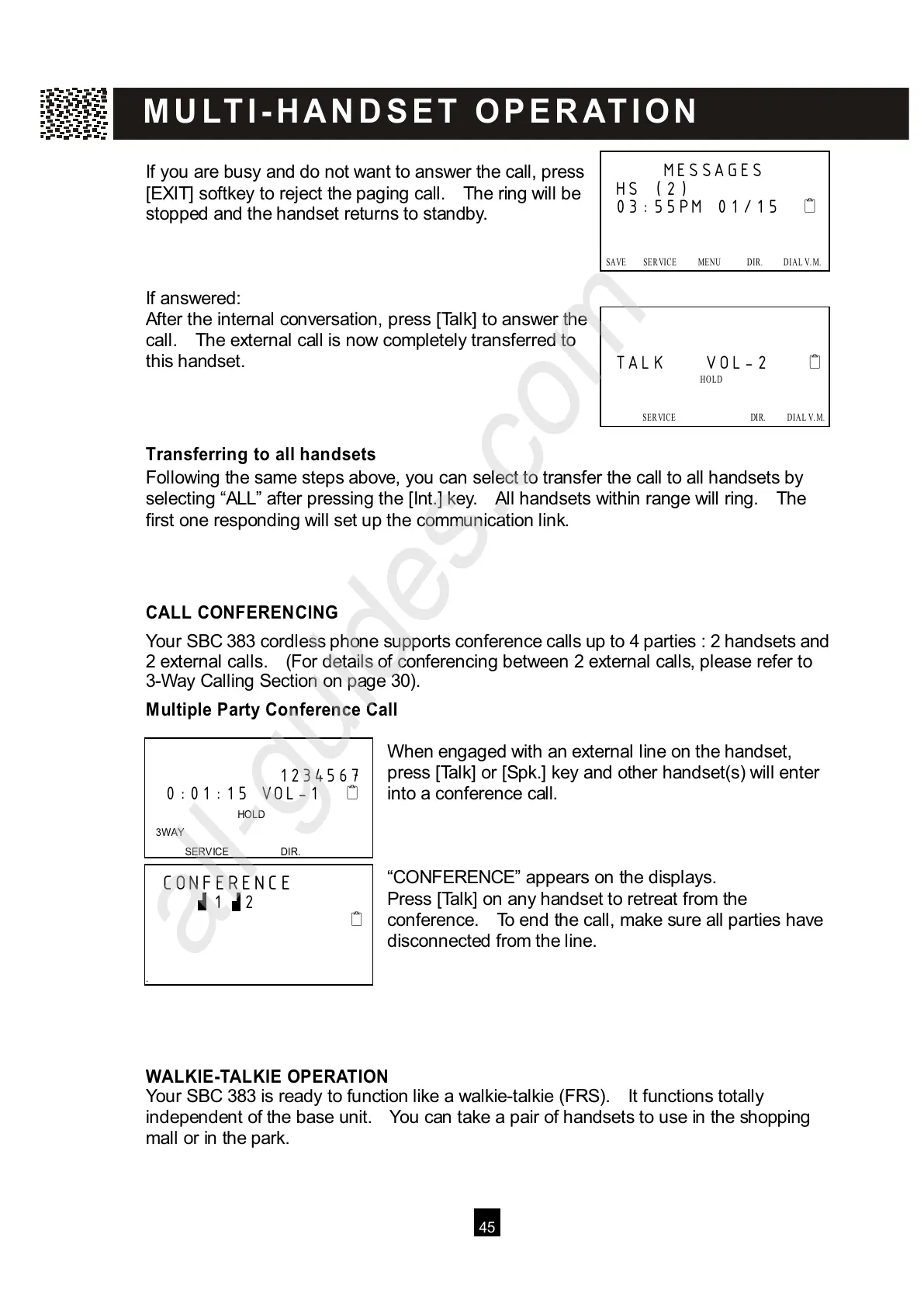 Your SBC 383 cordless phone supports conference calls up to 4 parties : 2 handsets and