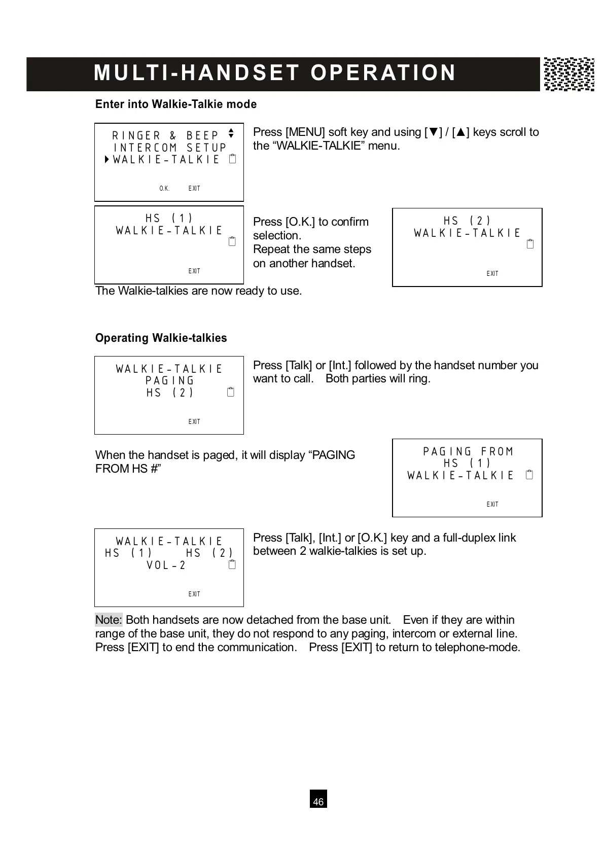 ange of the base unit, they do not respond to any paging, intercom or external line.