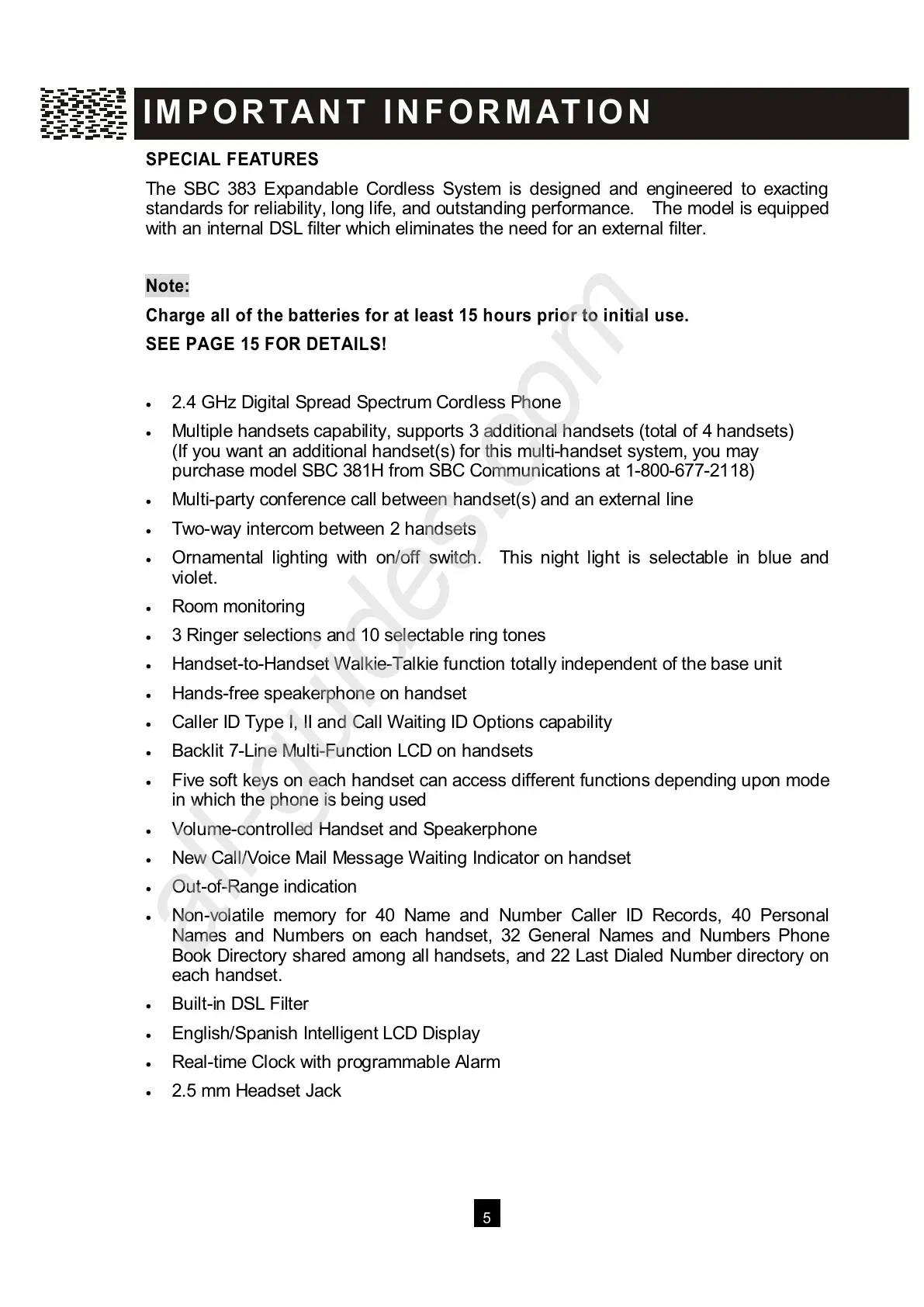 purchase model SBC 381H from SBC Communications at 1-800-677-2118)