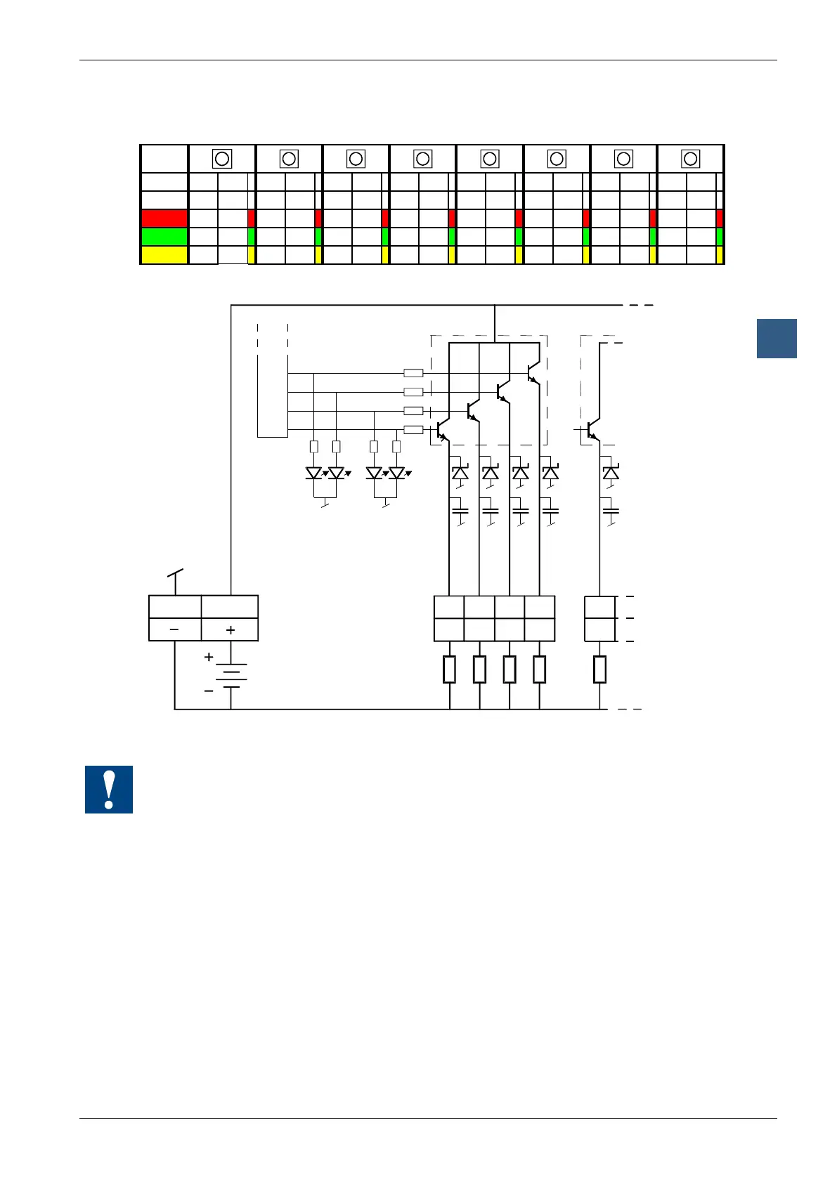 For every 2 outputs, a 3-colour LED is tted: