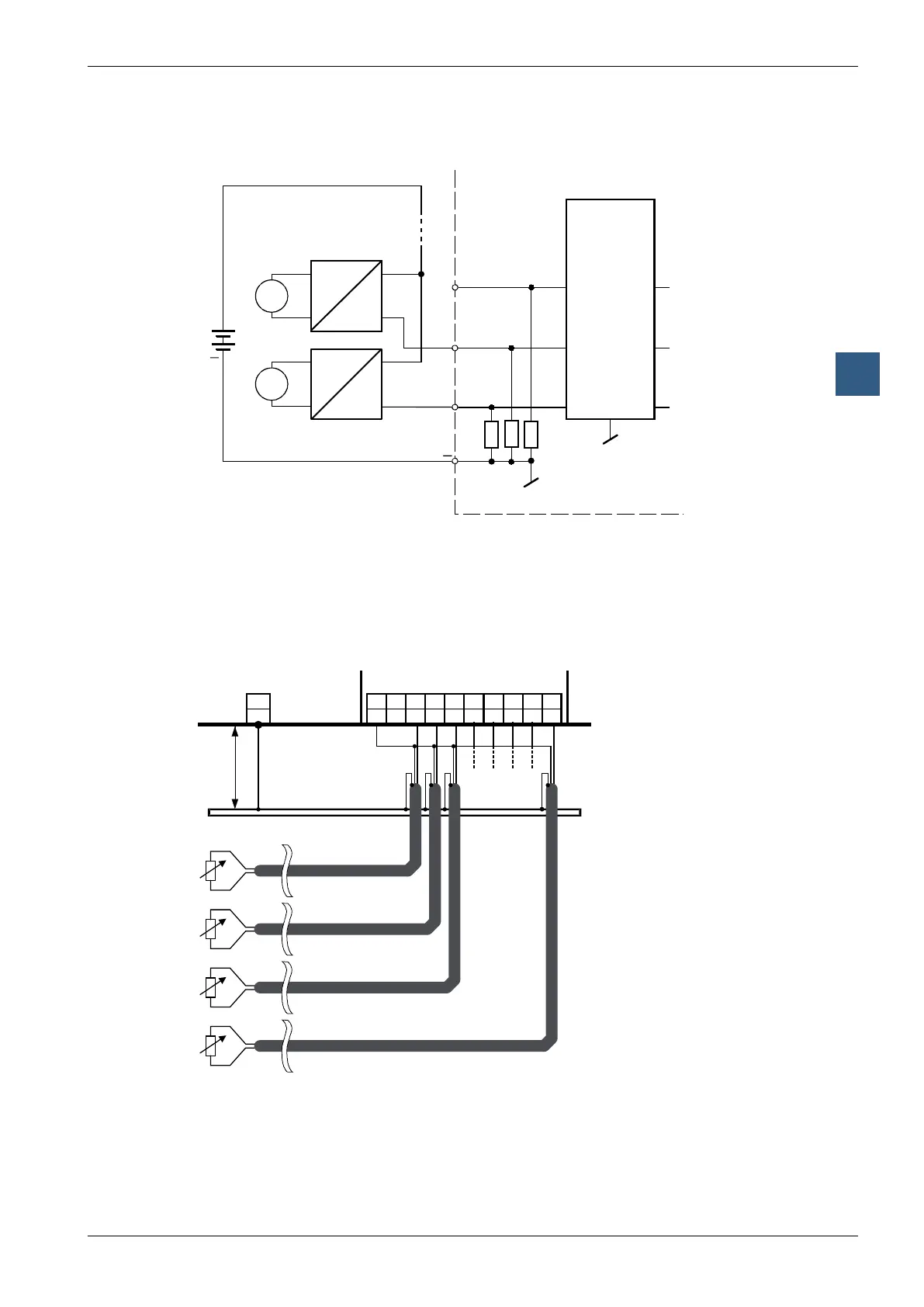 Two-wire transducers (0..20 mA and 4 … 20 mA transmitters) need a 24 VDC supply in