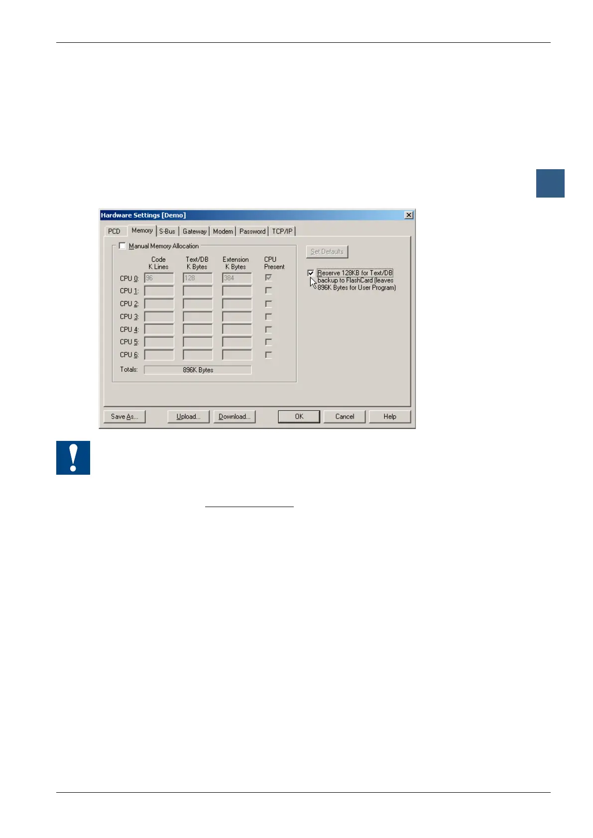 3.17.4 Backup/restore of RAM texts/DBs at run-time