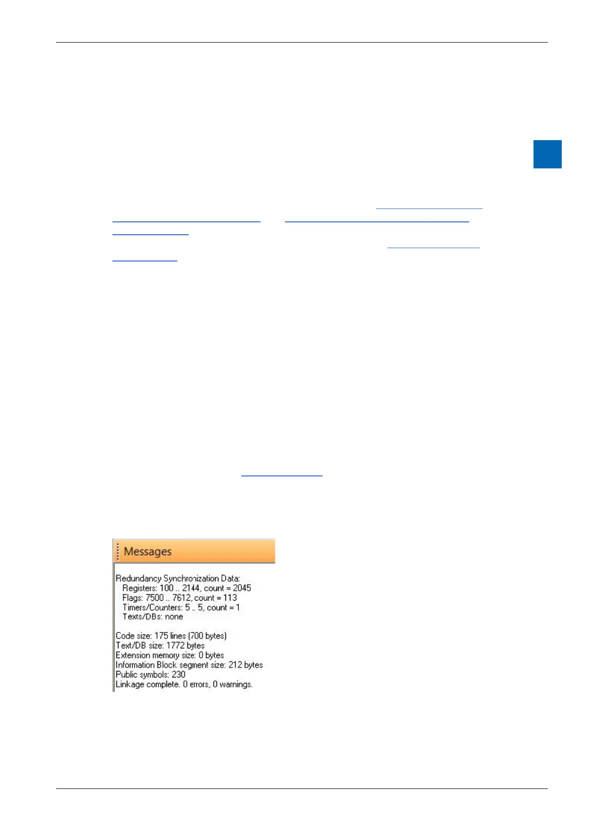 Manager’s “Messages” window when the Redundant device’s program is built: