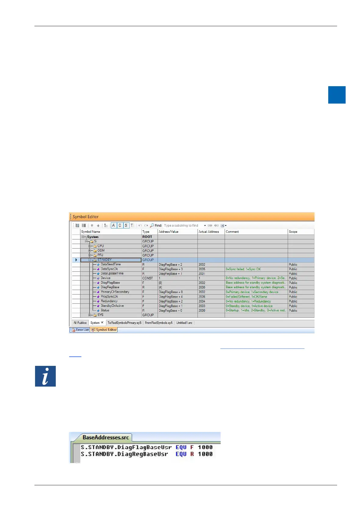 By default, the diagnostic Flag and Register symbols have dynamic addresses