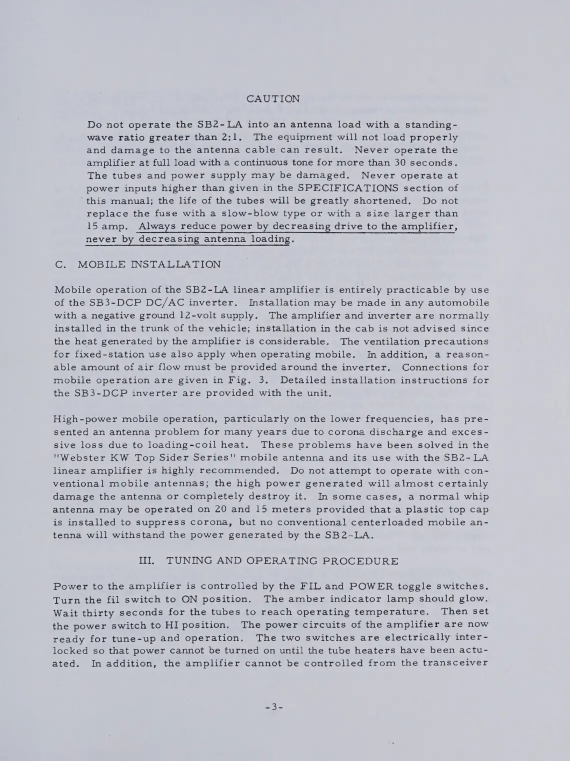 SBE SB2-LA - Mobile Installation; Tuning and Operating Procedure