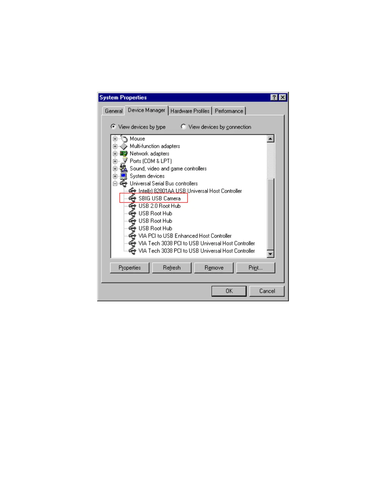 Manager tab of the System Control Panel. Click the “View devices by type” button and