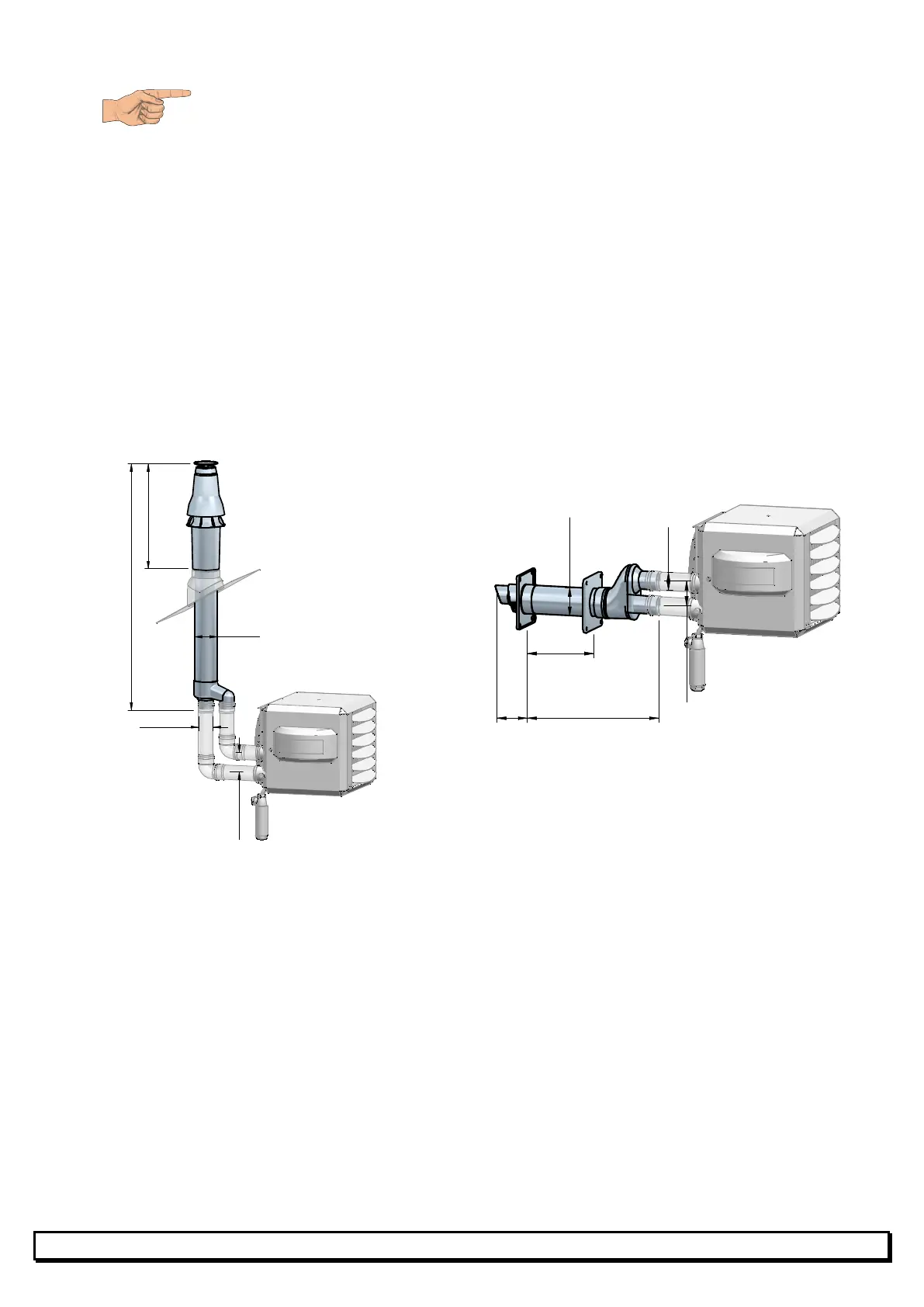 The warm air heater is a condensation unit. Think when installing to give an inclination of ≥ 50 mm