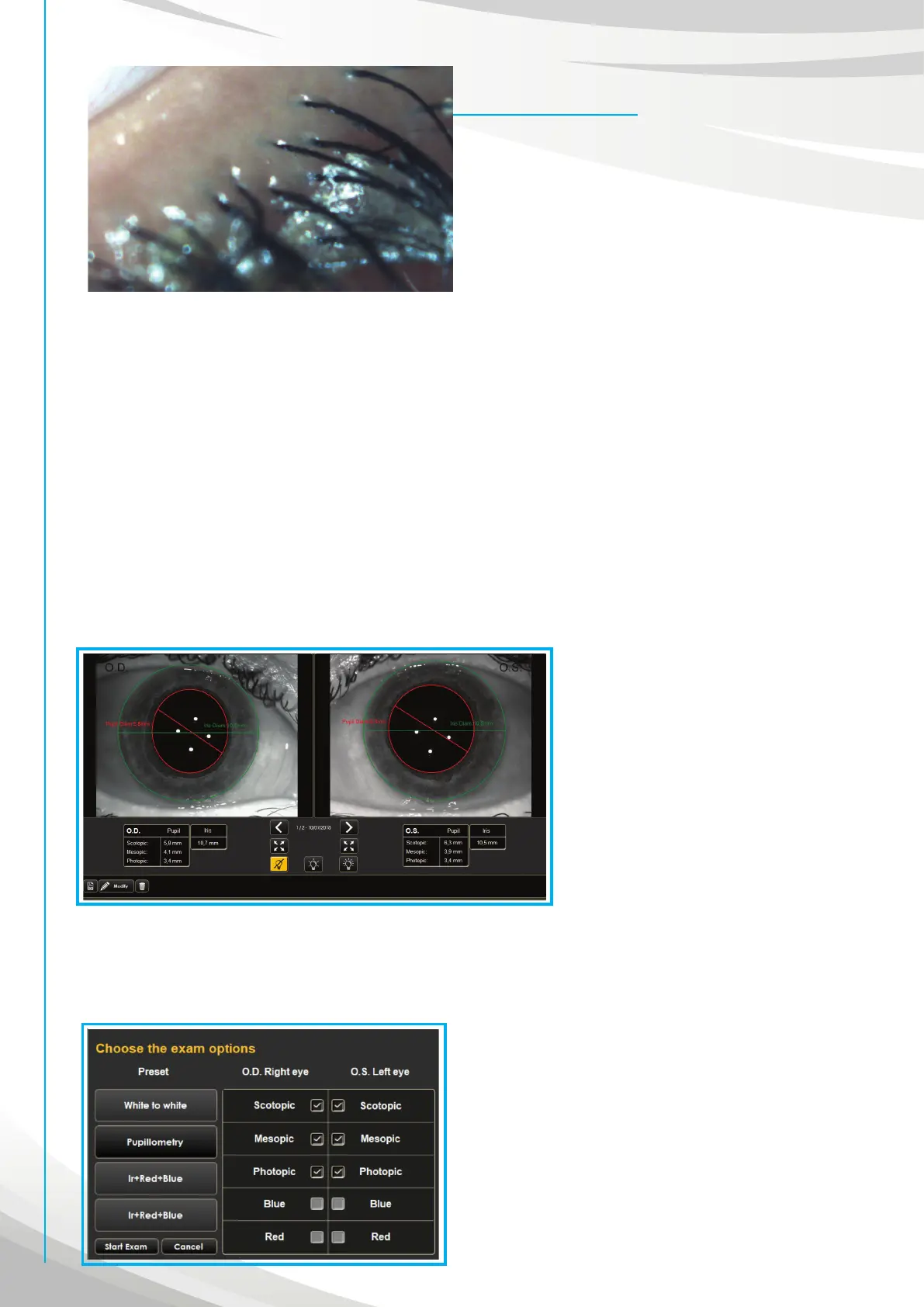 It is possible to acquire three dierent images of both eyes, or to choose which images acquire by selecting or