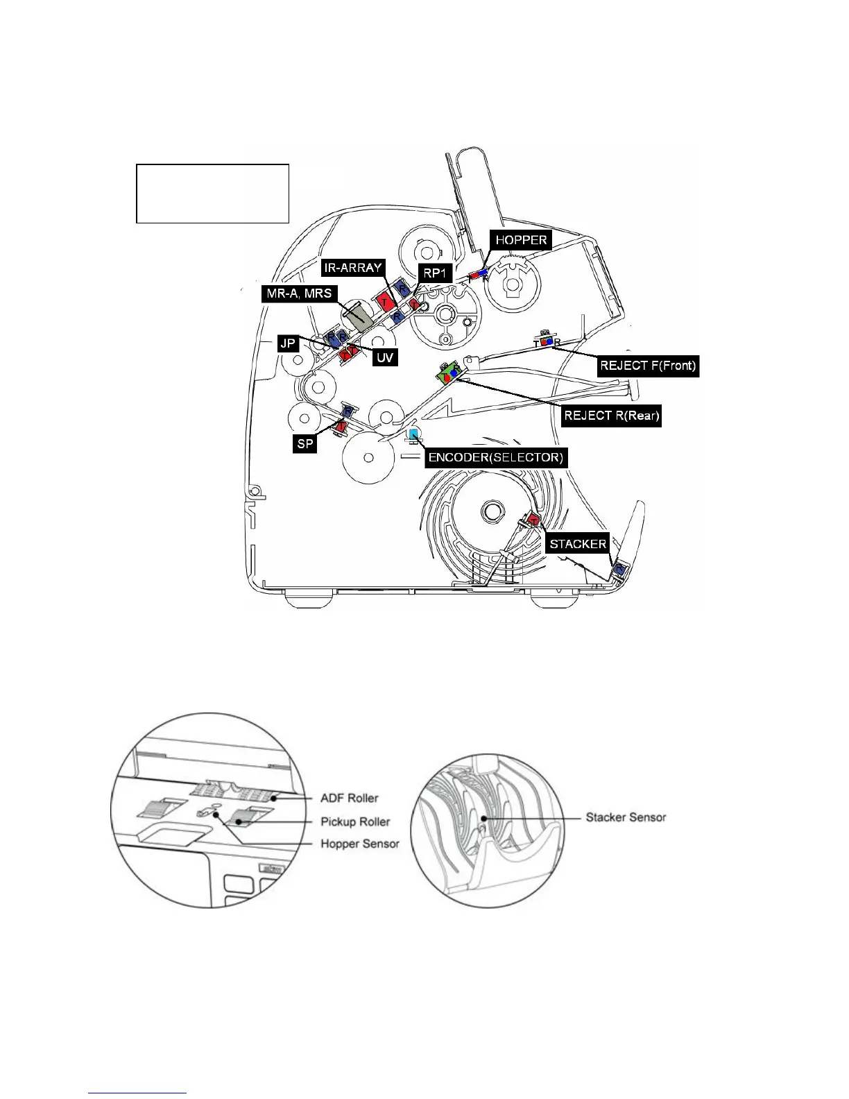 machine and to recognize the denominations of the notes. The sensors are very sensitive and if they are not