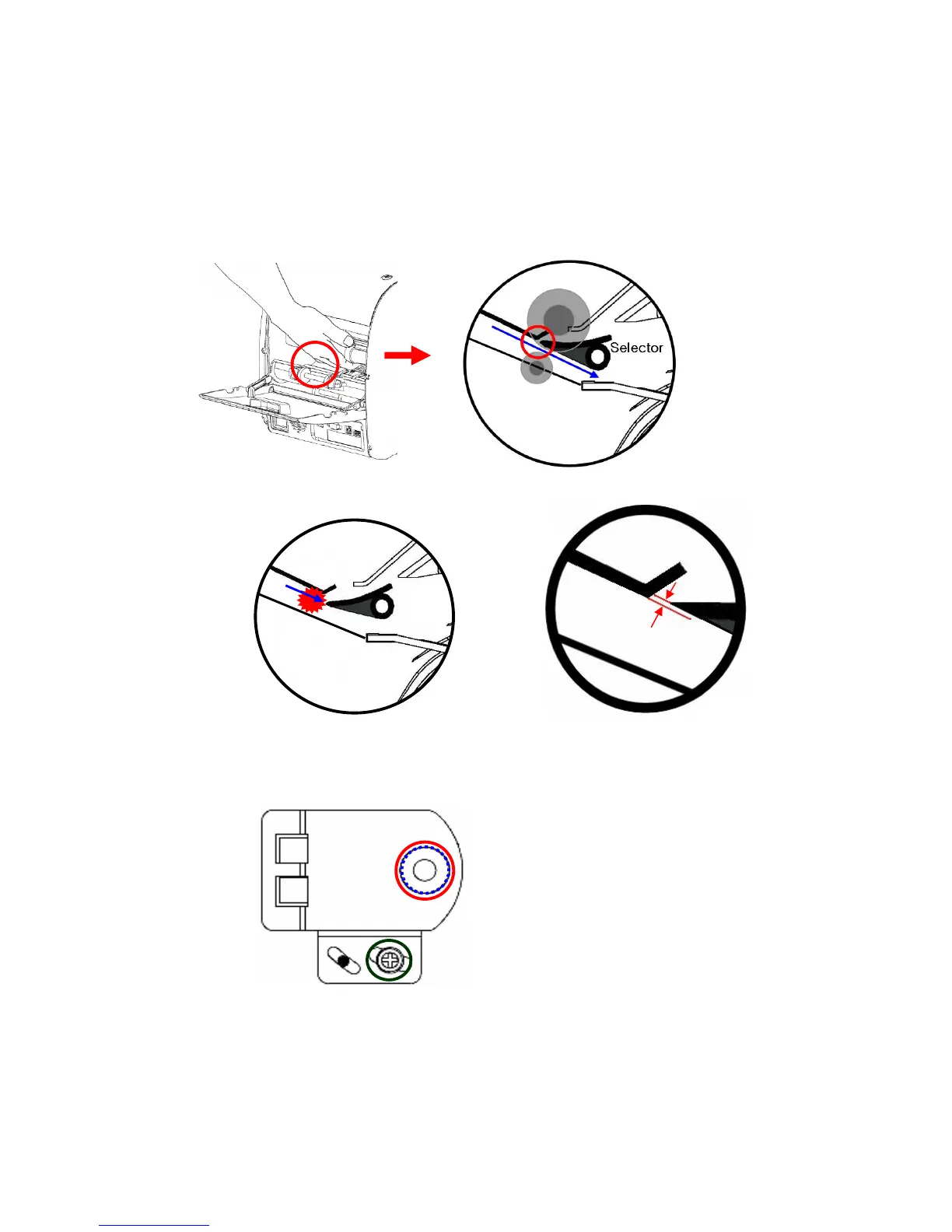 Step 2. Open Rear Door. Put your hand inside of the machine and lift up Guide SELECTOR as the below