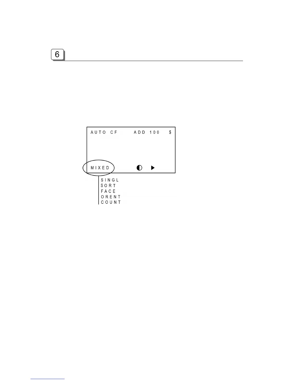 In Mixed mode, the machine counts and discriminates the denominations of the bank notes. If the
