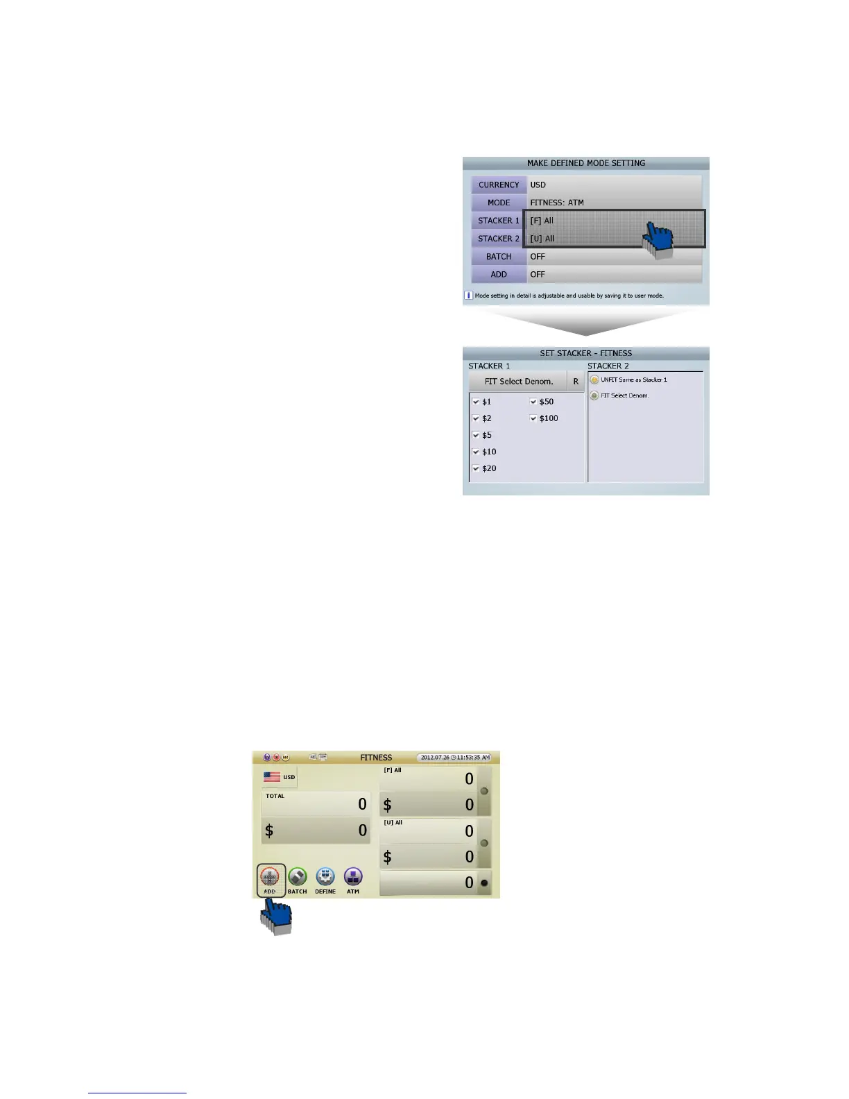 ● ADD is activated by touching ADD button on the screen of each mode.
