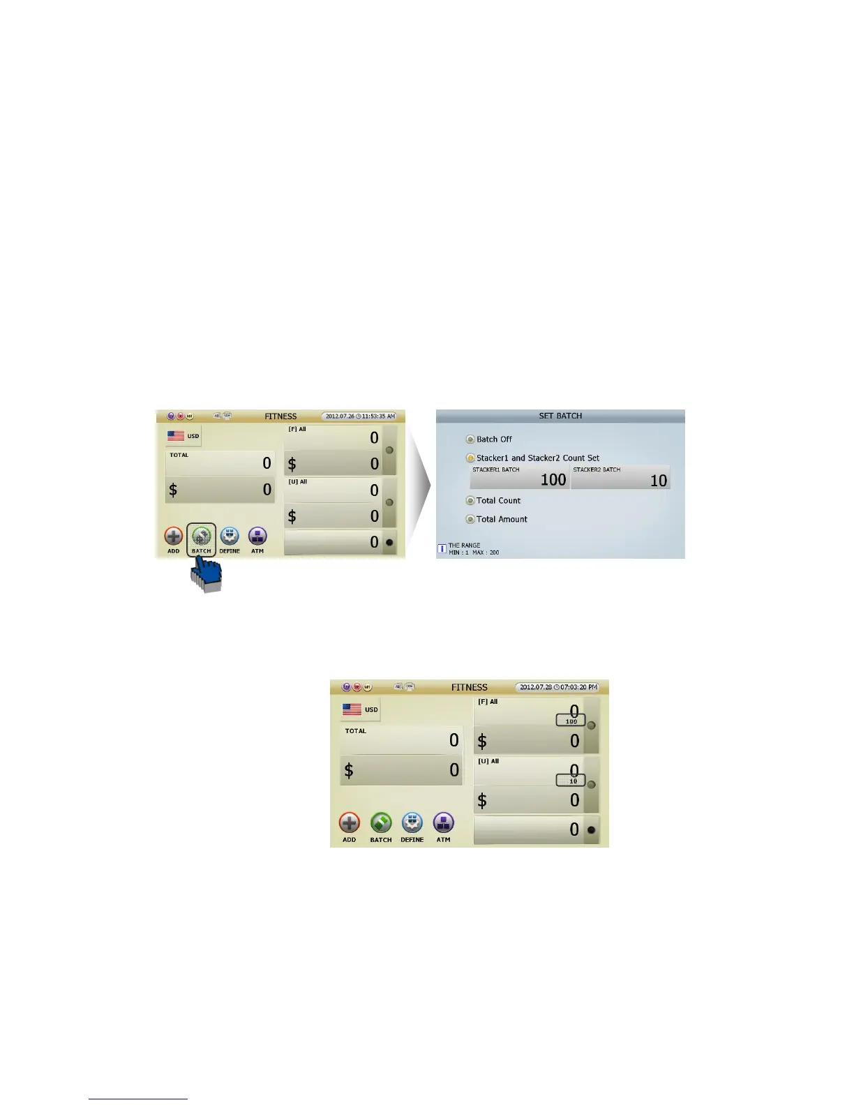 Batch is used when user want to count specific number of banknotes. For example, Batch is used when