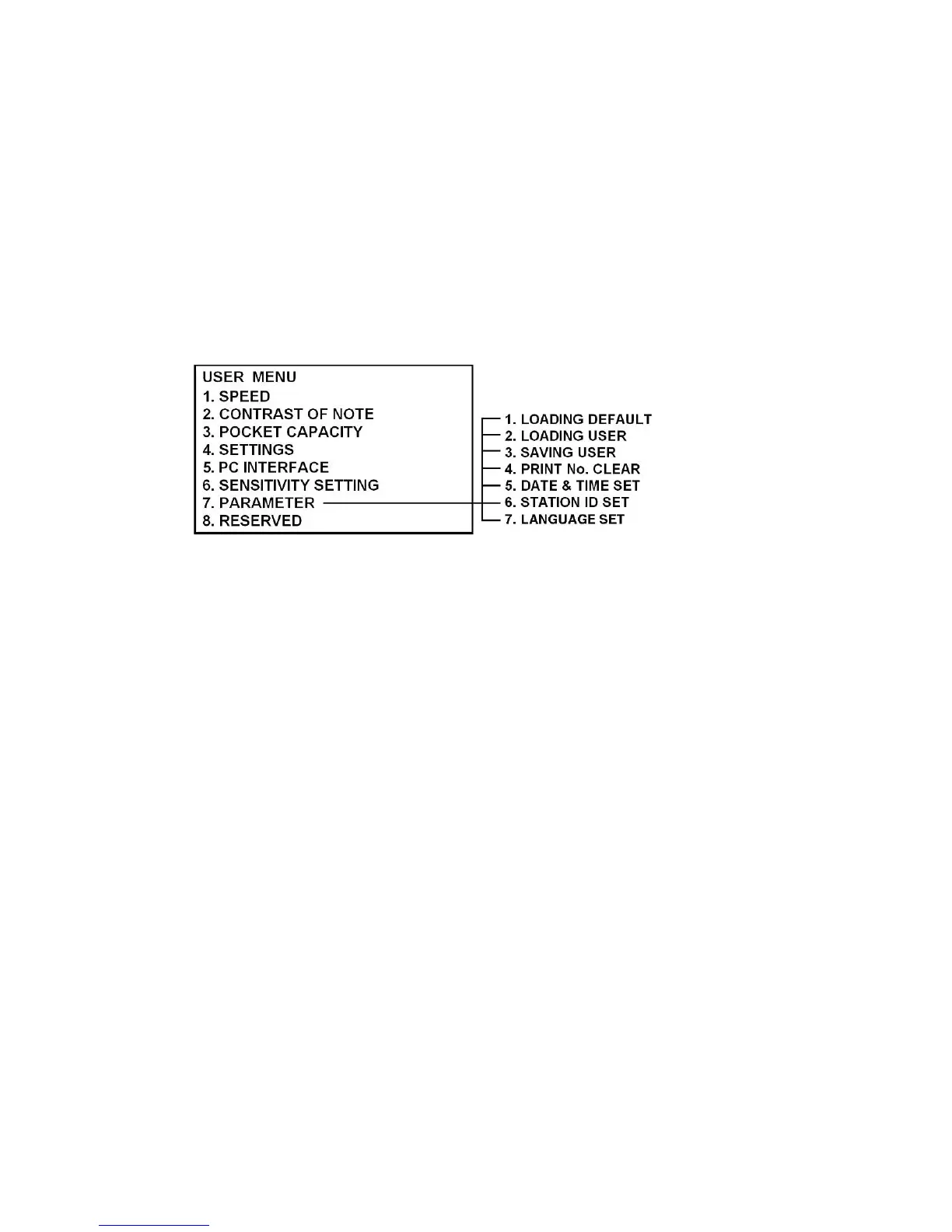 If you want to reload your own parameters saved by “Saving User”, then select “Loading User” using UP/DOWN