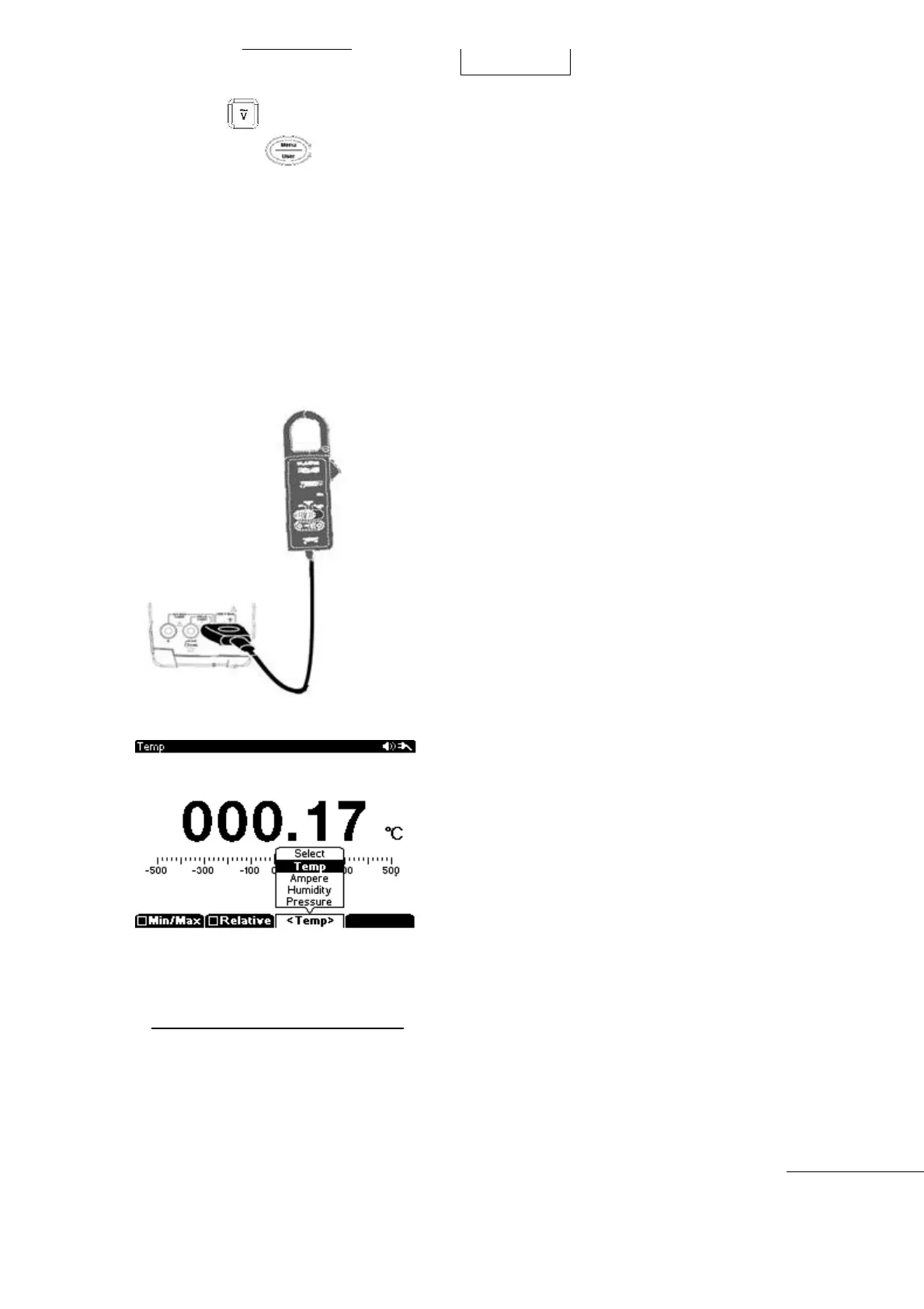 Press the Sub-Menu “F3” key to select “Temp, Ampere, Humidity, or Pressure