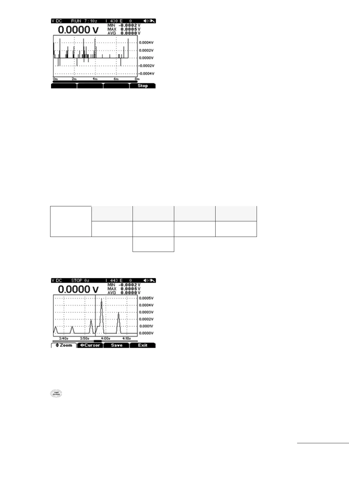 During Data Logging, if the “F4” (Stop) key is pressed, Sub-menu ZOOM or SAVE is