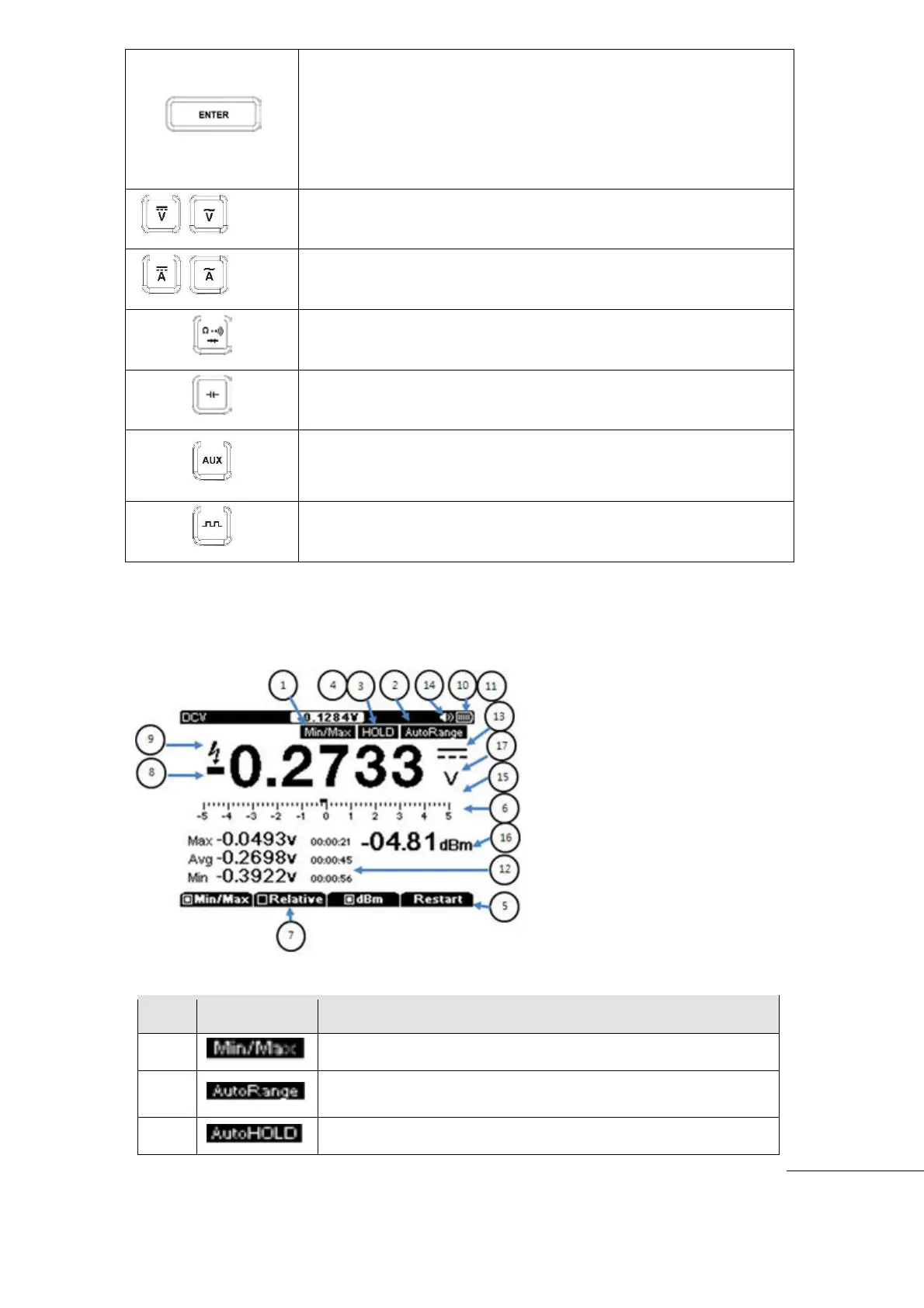 Volts measurement keys : AC+DC, DC, AC