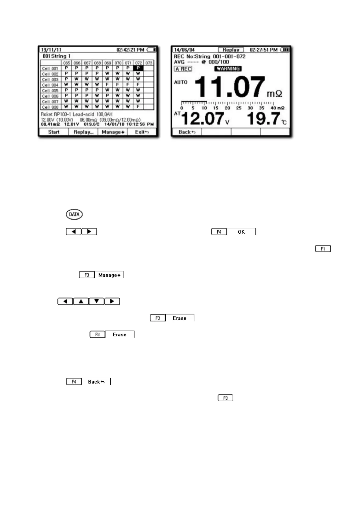 ⑤ Select the data block to erase from recorded data address by using the arrow
