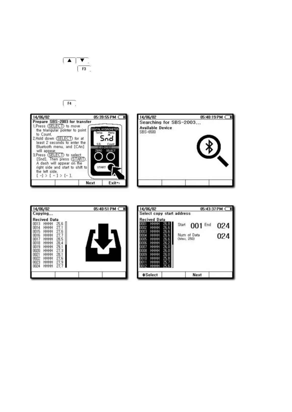 ⑪ The SBS-6500 will paste the specific gravity readings into the data blocks in order