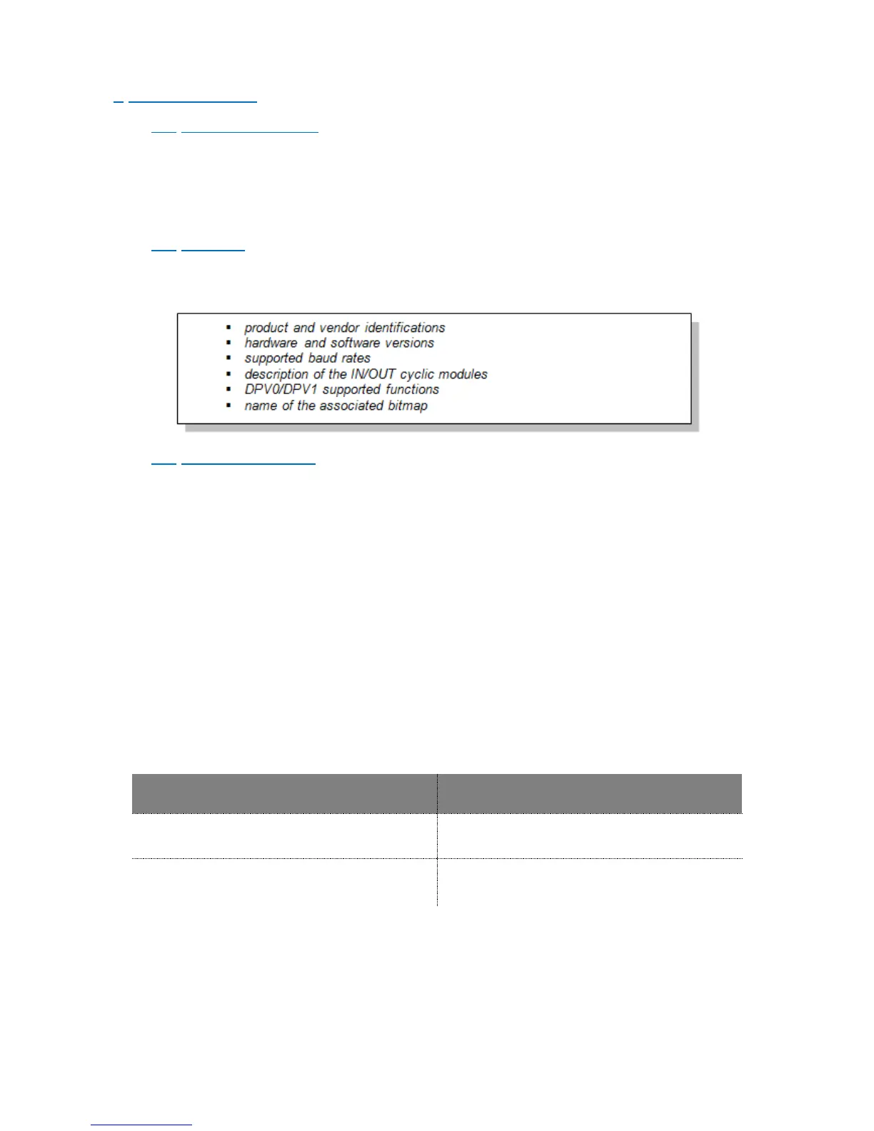 eNod4 GSD file defines several modules that can be integrated to the Profibus DP cyclic frames. All types of