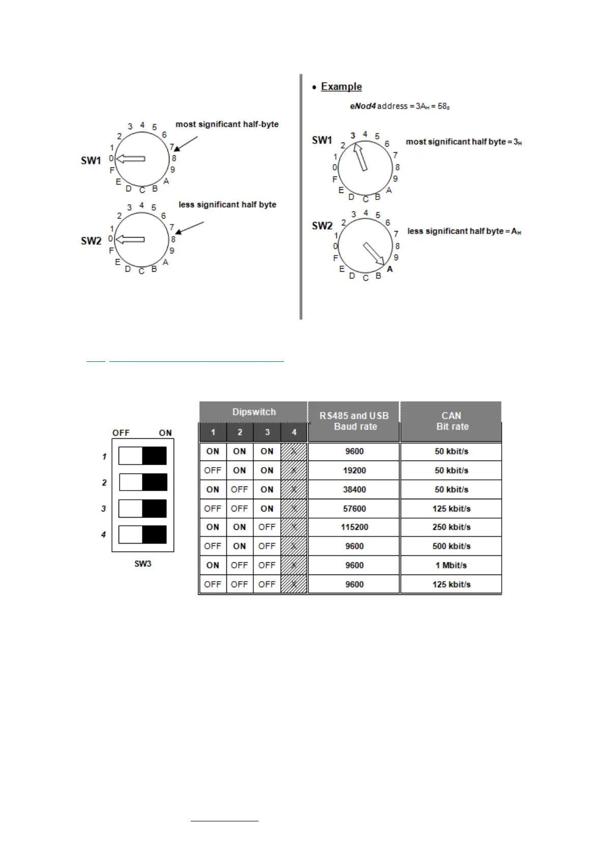 Dipswitch selection (SW3) is accessible from the front panel. The new baud rate only is taken into account after a reset.