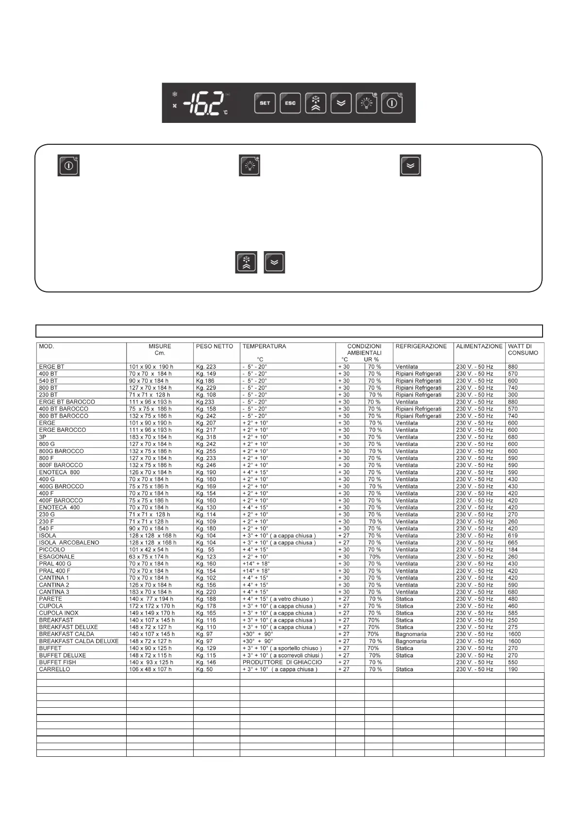 +5° - 21° + 30 70 % Ventilata 230 V - 50 Hz 570