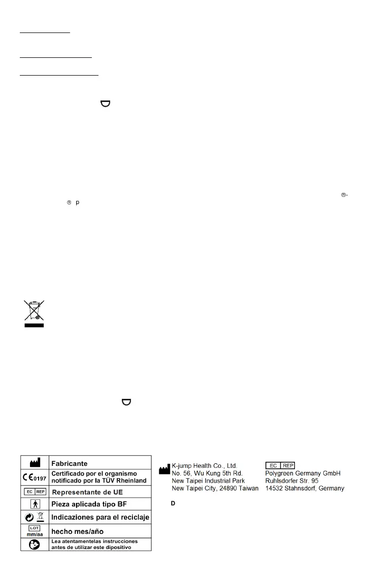 el aparato. Para la desinfección en caso de utilizar el termómetro en centros médicos se recomienda el uso de Mucocit