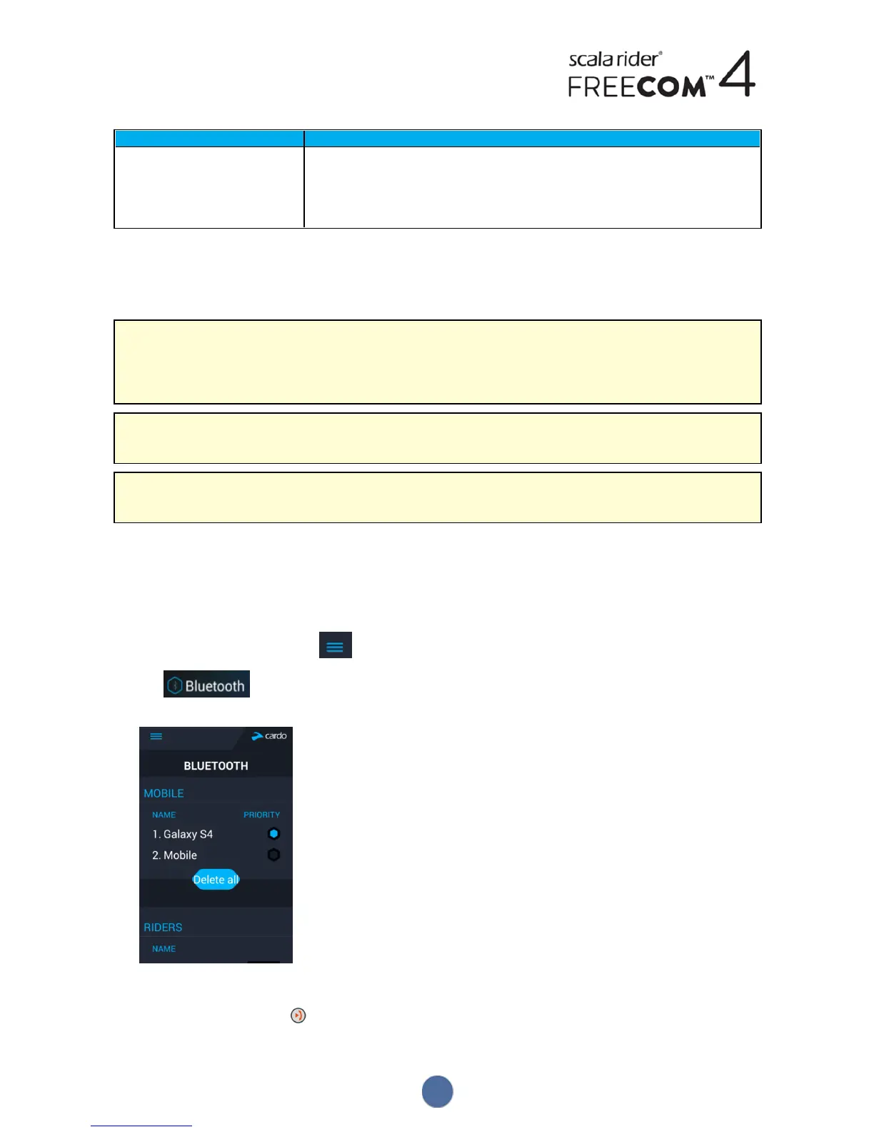 ● Bluetooth intercom and Click-to-Link calls have the same priority, so Click-to-Link calls will not interrupt any