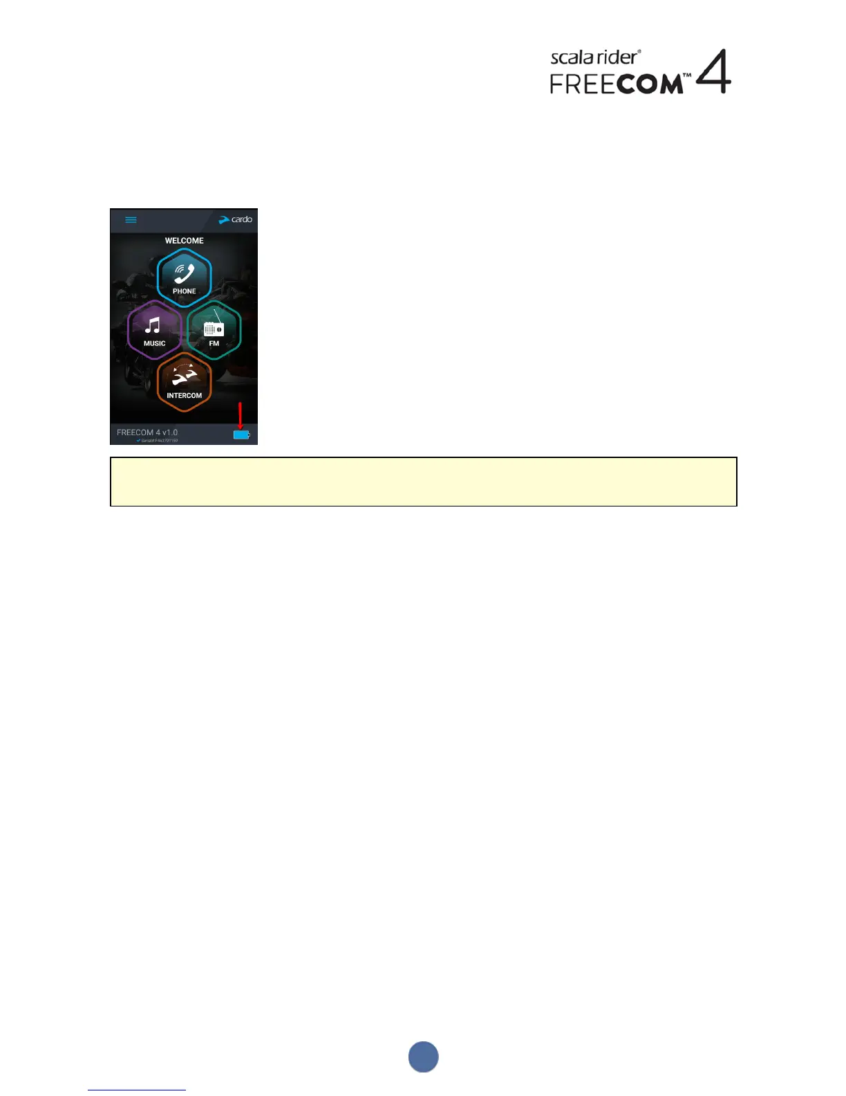 If your FREECOM4 battery level reaches 20%, you hear a battery status voice announcement warning you that your