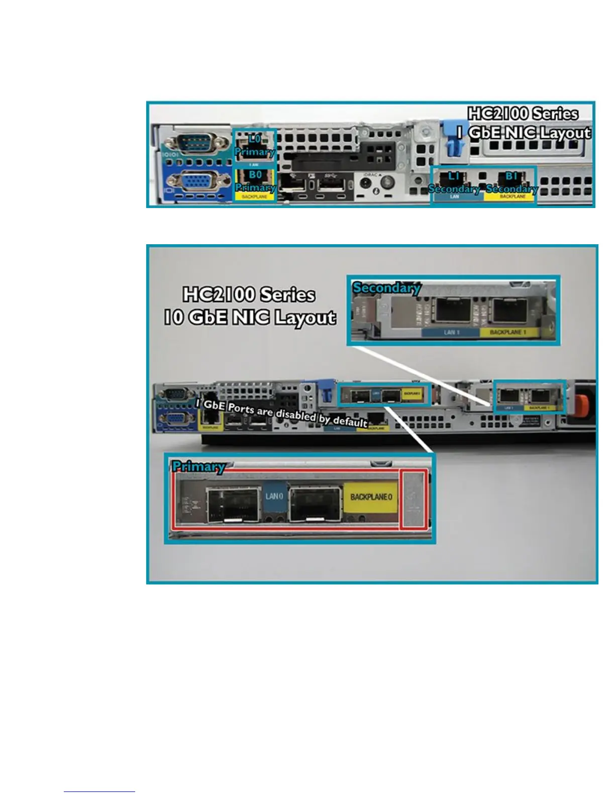 ■ Rear 10 GbE view of the HC2100 Series node: