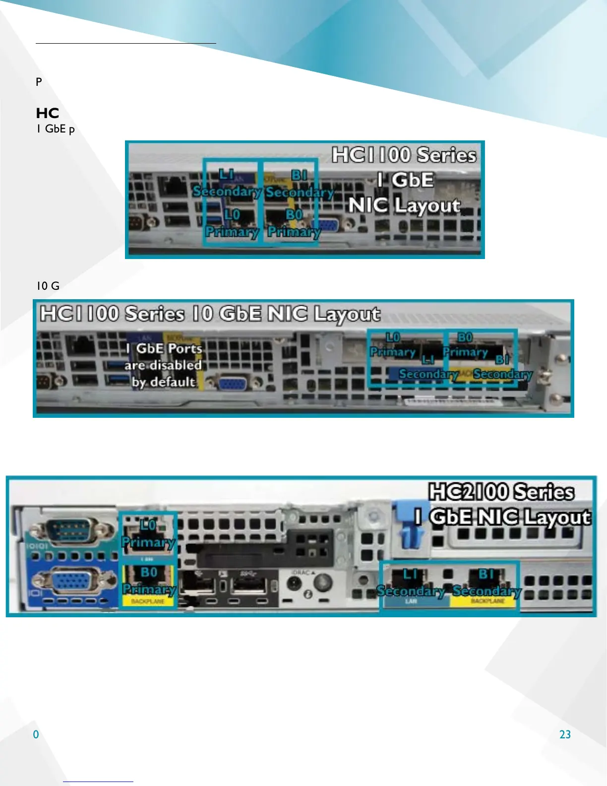 Physical NIC port congurations for 1 GbE and 10 GbE node options.