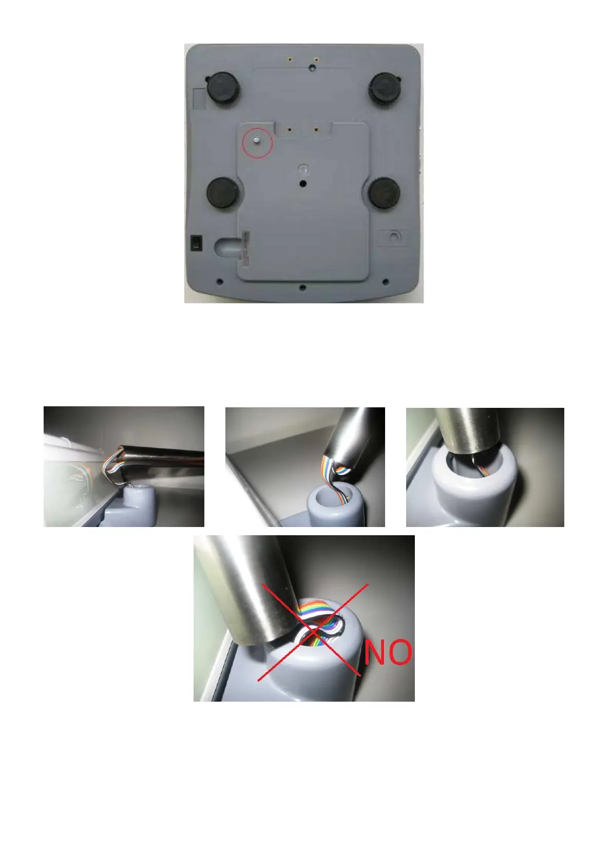 Während der Installation, bitte Vorsicht an dem Anschlussflat zwischen dem Saeule und der Stuetze.Der Kabel muss