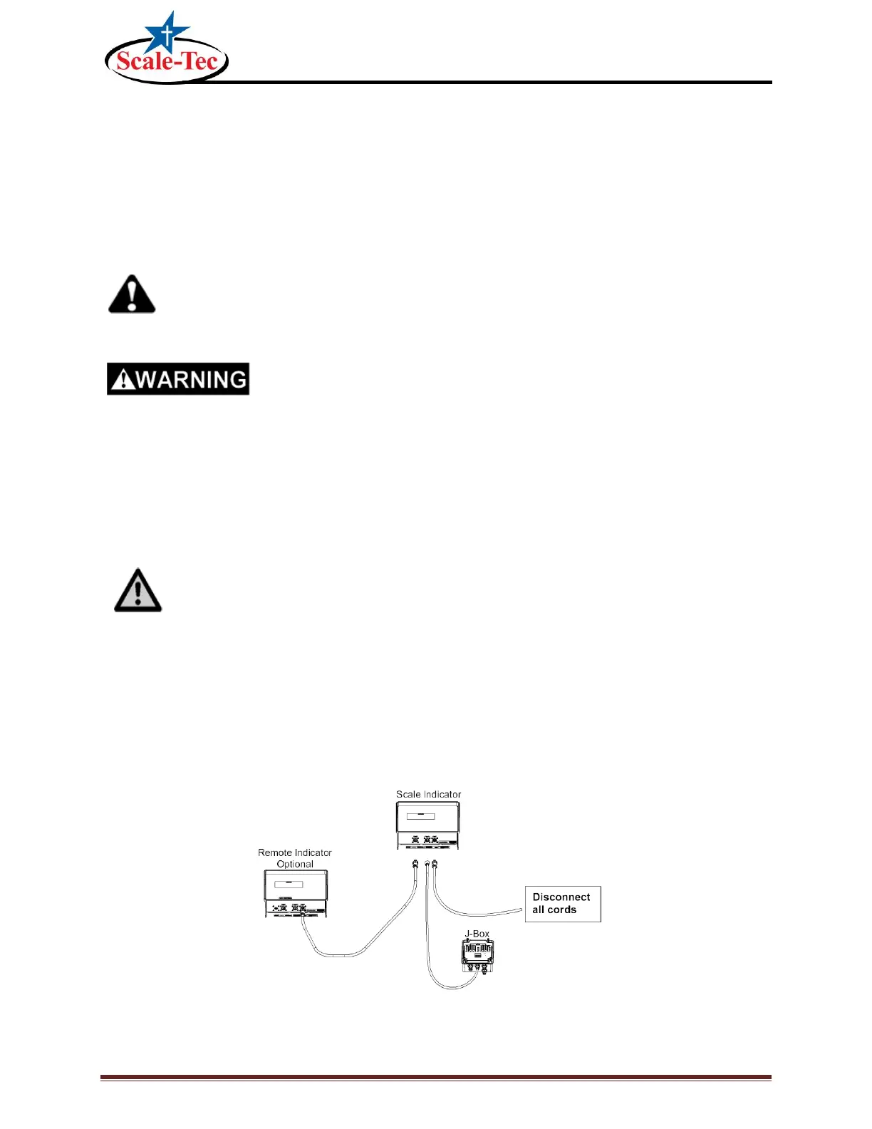 machine. If cables are left connected, the weighing indicator and connected load cells could be