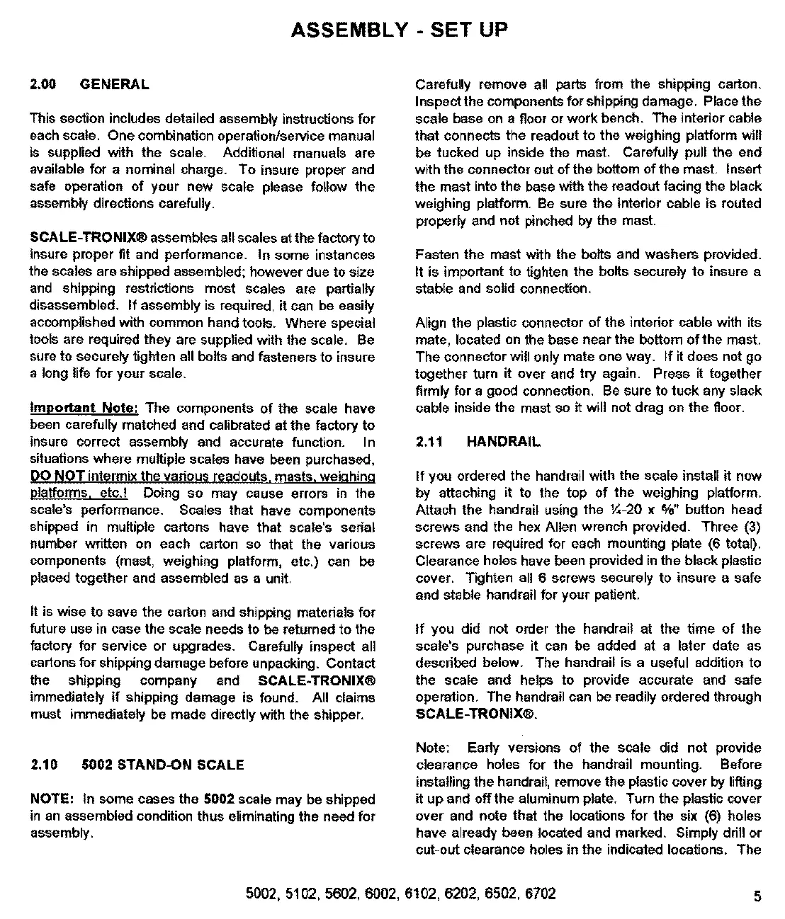 Scale-Tronix 6202 - Assembly, Setup, and Operation; 2.00 Assembly and Setup
