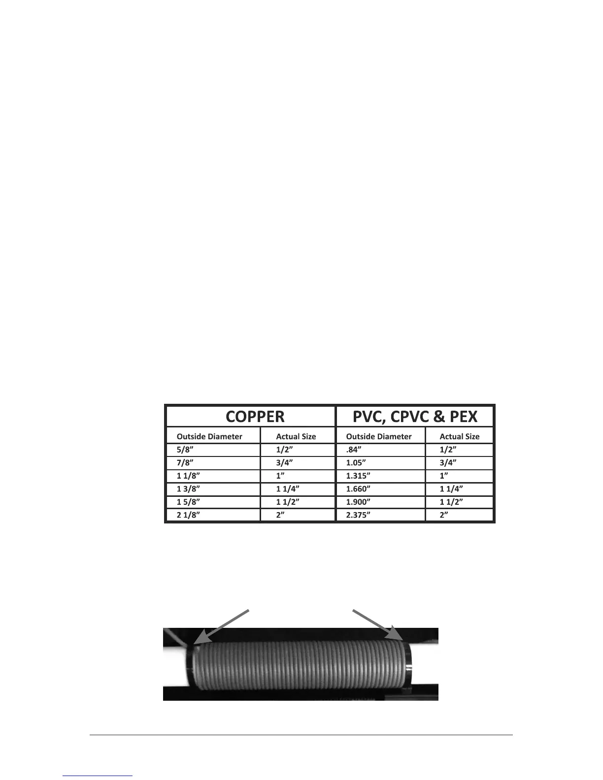 outside diameter. Use Table 1 to determine the size of the pipe. The actual pipe size is always
