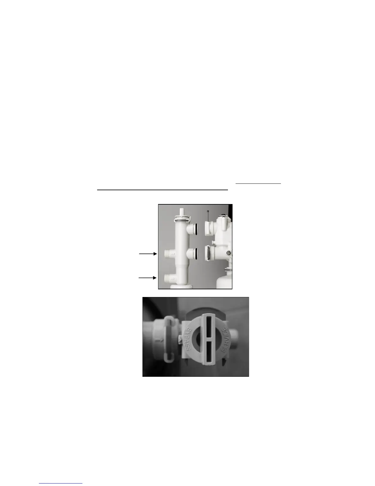 4.4 Connect the bypass unit to the softener, by gently pushing the bypass into the two ports
