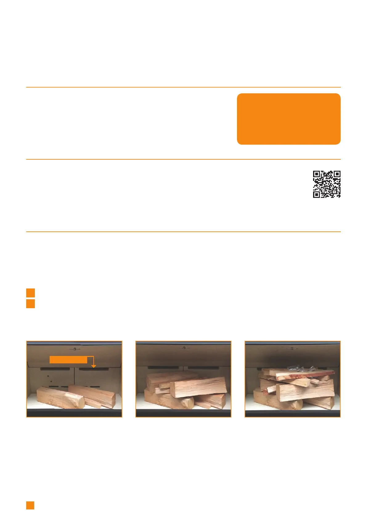 Place the pieces of wood, firewood and fire lighters in the combustion chamber as shown below