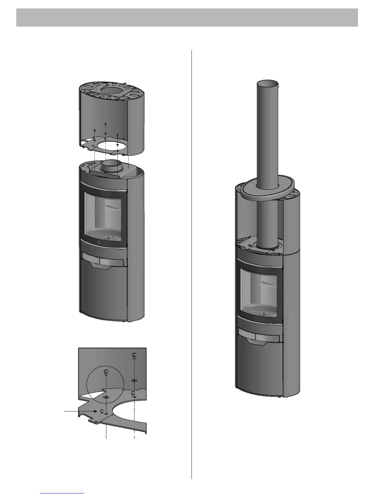 For mounting of the flue collar, see page 15: “Connecting piece top