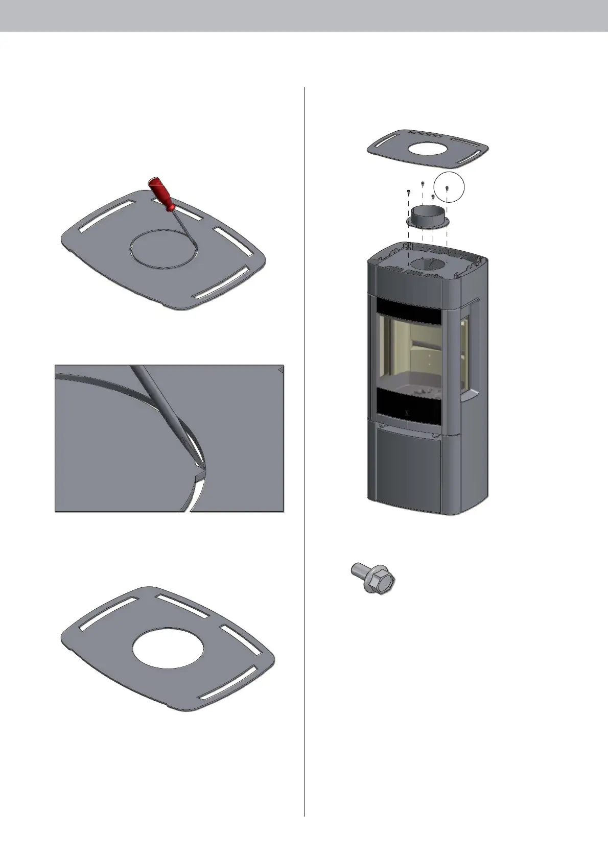 Fasten the connecting piece with screws from the ash drawer and